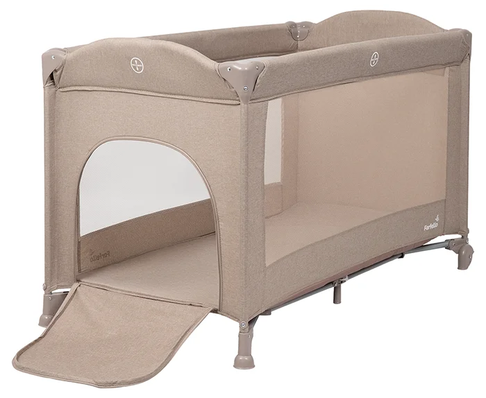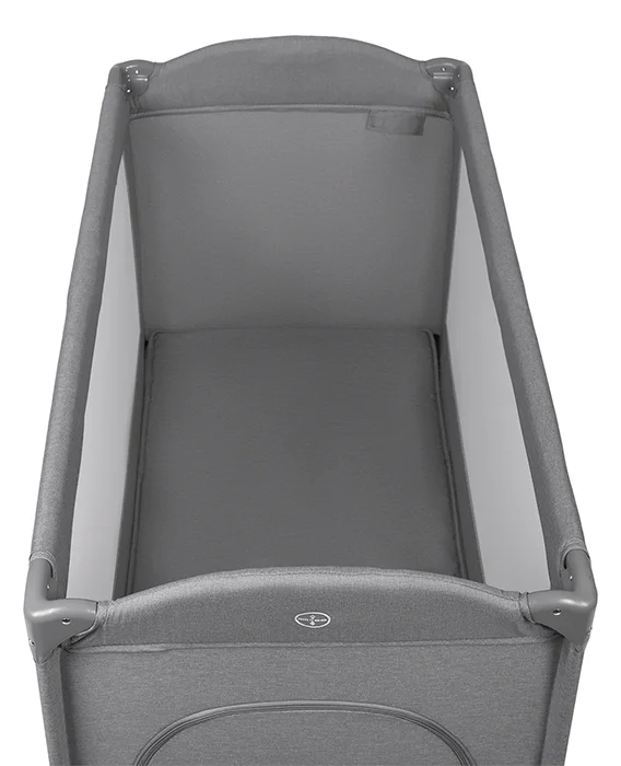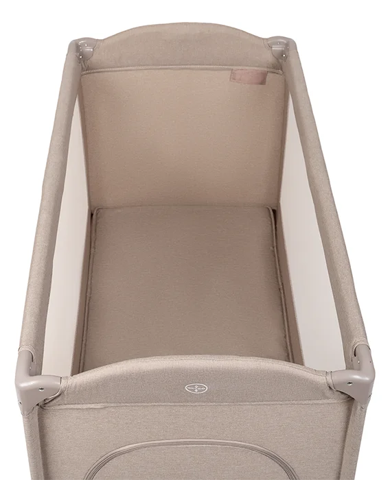 Прочный каркас и два резиновых колеса позволяют легко перемещать кроватку по квартире. Благодаря боковому входу вы можете легко укладывать и забирать малыша.