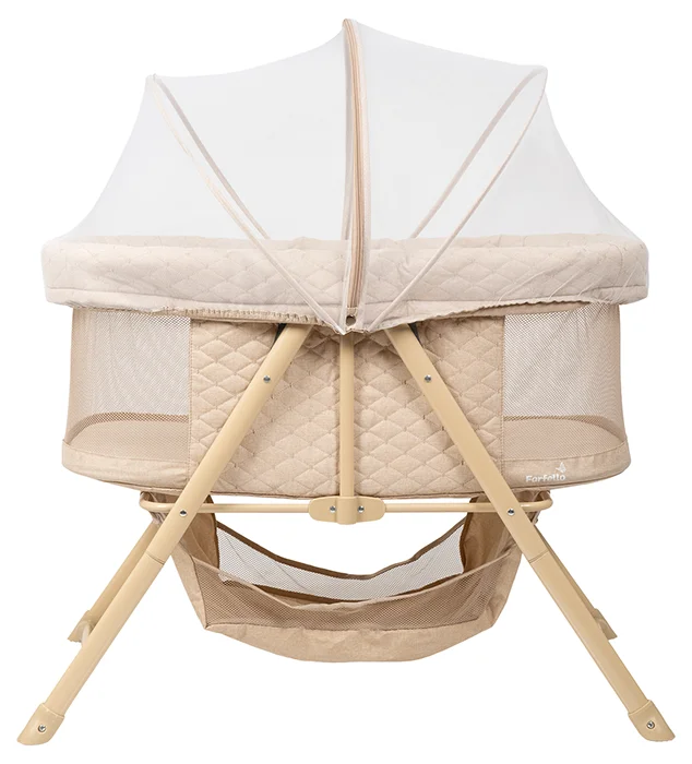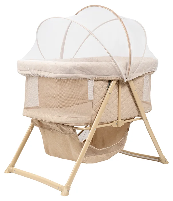 Удобная москитная сетка в комплекте защитит кроху от насекомых — особенно актуально, если вы любите проветривать комнату или отдыхаете на даче. А вместительная нижняя корзина — практичное решение для хранения пелёнок или игрушек. Всё необходимое будет под рукой.