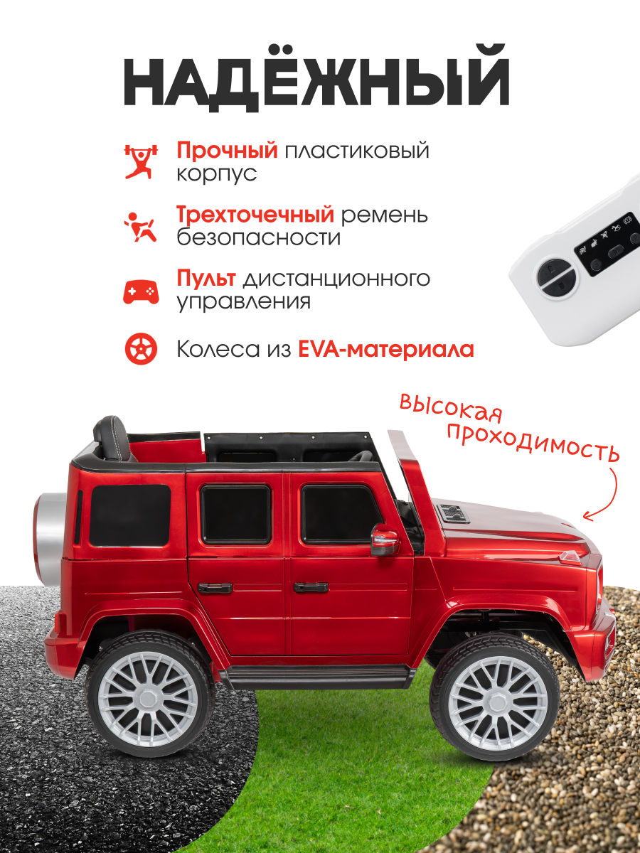 Детский электромобиль TR123 – вдохновлен культовым автомобилем – он копирует его узнаваемый стиль, мощный силуэт и характерный дизайн, чтобы ваш маленький водитель почувствовал себя владельцем настоящего внедорожника!