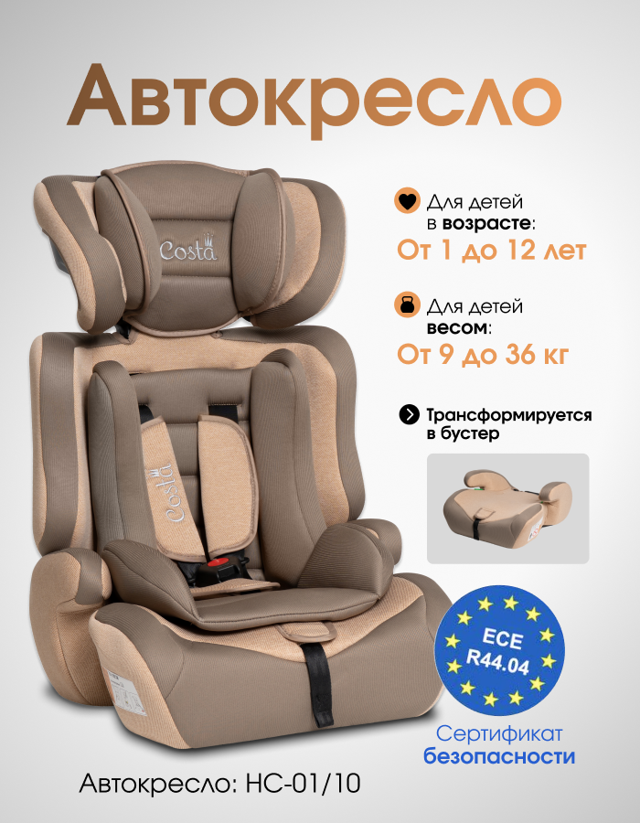 Автокресло детское 9 - 36 кг COSTA HC-01