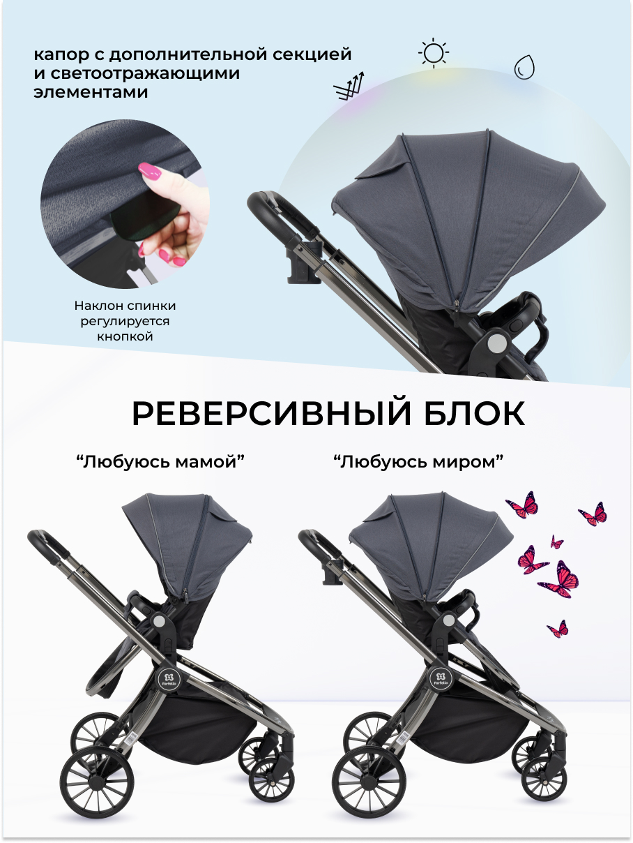 1). Реверсивный блок позволяет установить коляску лицом к родителям и по ходу движения.