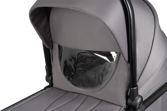 • Полог для защиты малыша от непогоды крепится на магниты. Родители могут наблюдать за малышом через прозрачное смотровое окно.