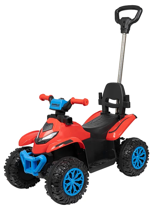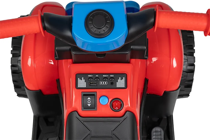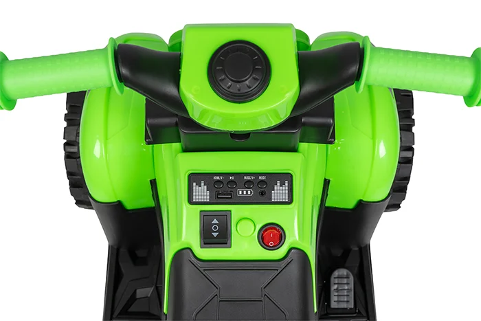 • Электромобиль оснащён аккумулятором 6V 4Ah, одного редуктора достаточно для плавного старта и движения. Включение — с кнопки, движение — с педали на подножке.