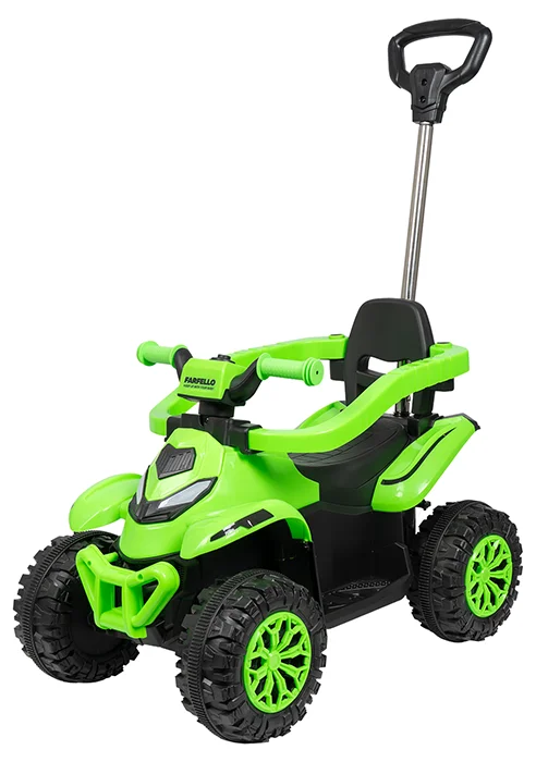 • Прочный пластиковый корпус выдерживает активные игры, а пластиковые колёса диаметром 22 см обеспечивают устойчивость даже на неровных поверхностях. Ширина колёсной базы — 41,5 см, что делает поездки стабильными и безопасными.