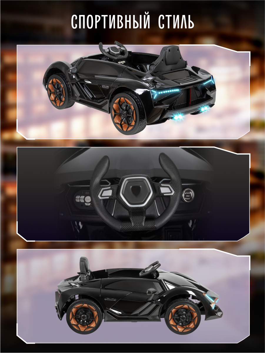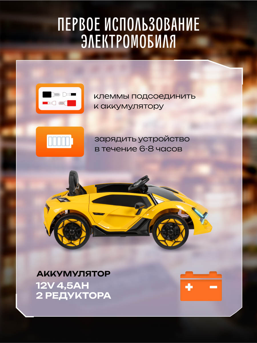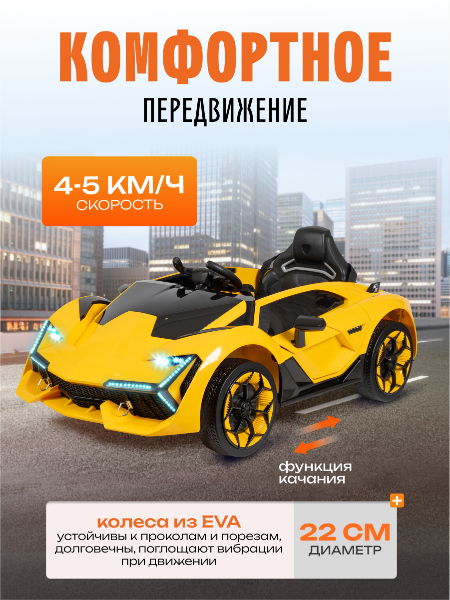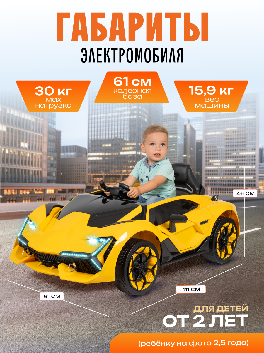 Роскошный спортивный электромобиль для маленьких гонщиков! Изысканный дизайн в стиле легендарного Lamborghini воплотит мечты вашего ребенка о вождении суперкара. Стильный электромобиль сочетает в себе привлекательный внешний вид, безопасность и современные технологии.