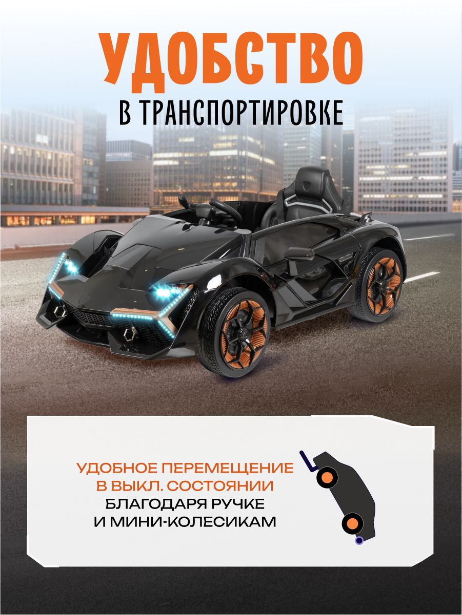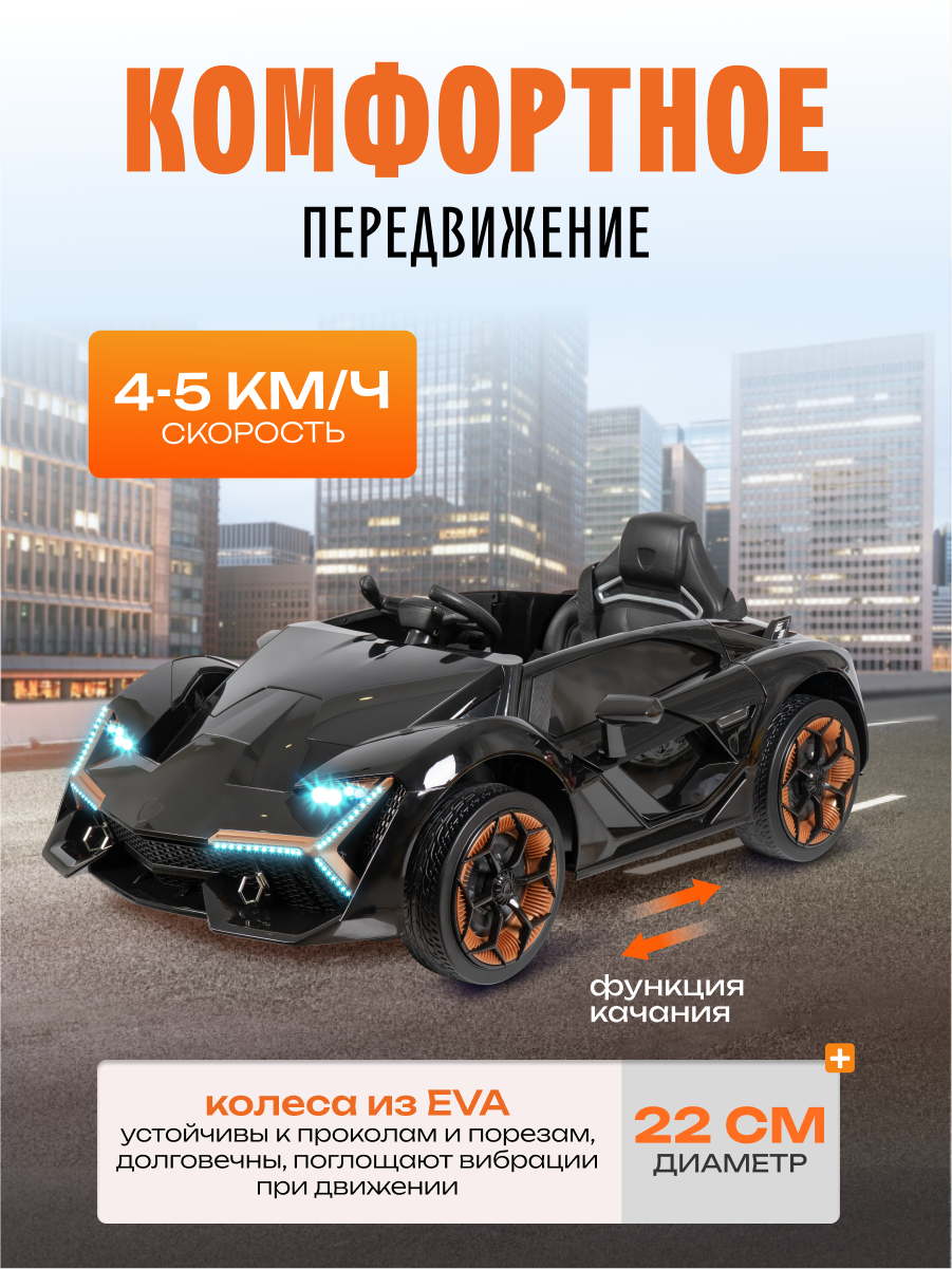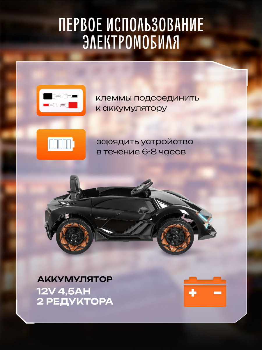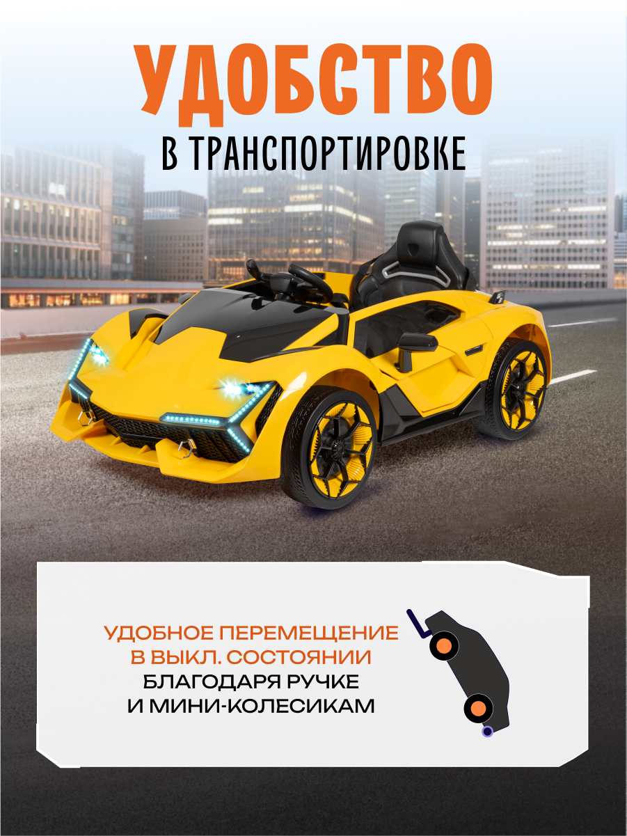 Роскошный спортивный электромобиль для маленьких гонщиков! Изысканный дизайн в стиле легендарного Lamborghini воплотит мечты вашего ребенка о вождении суперкара. Стильный электромобиль сочетает в себе привлекательный внешний вид, безопасность и современные технологии.