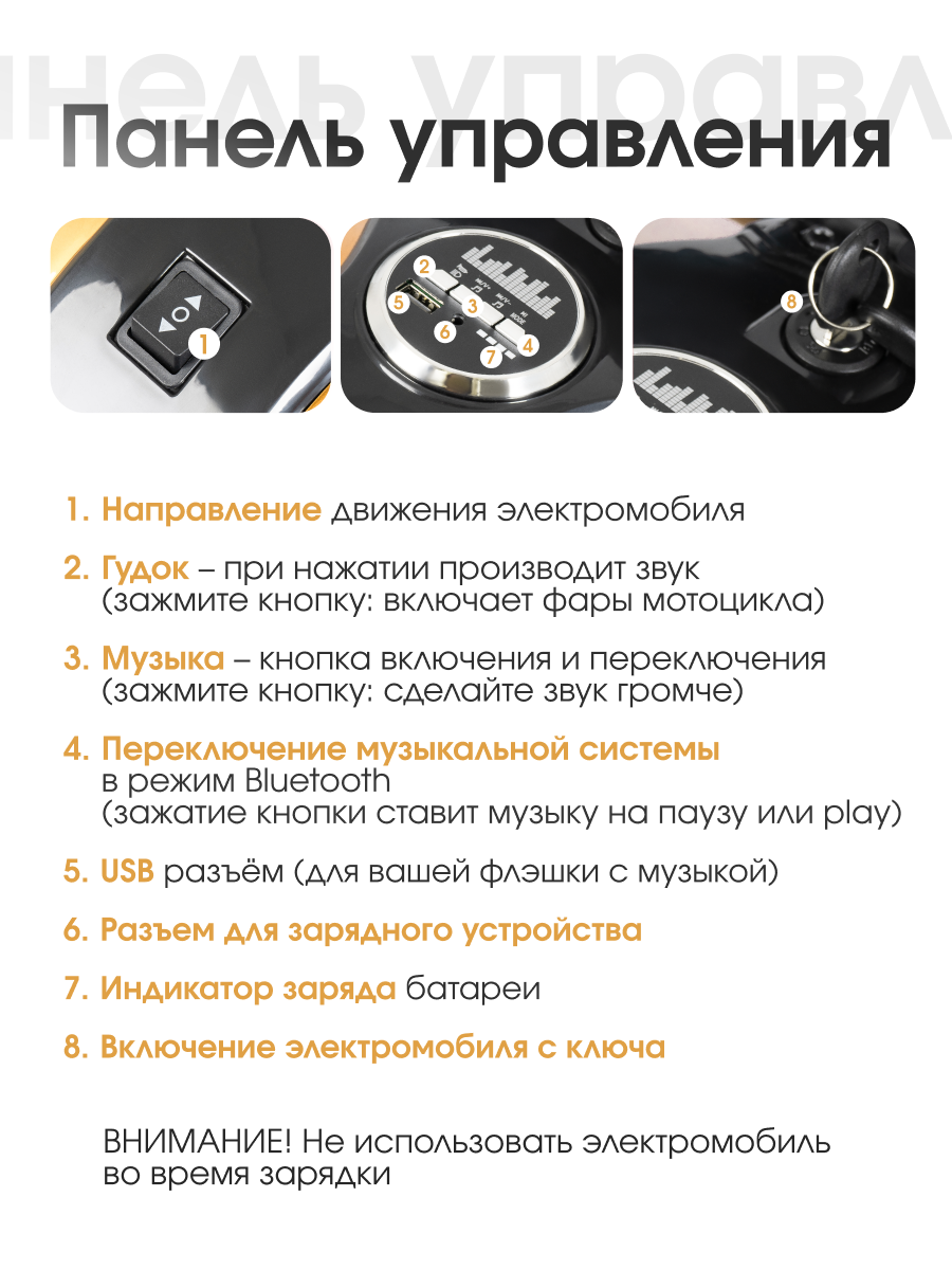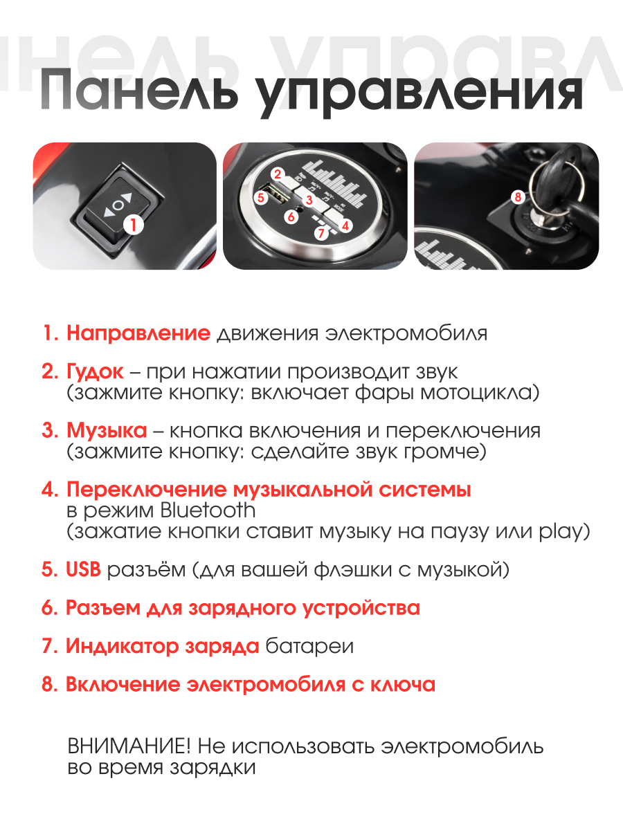 • Световые эффекты: яркие передние фары делают поездку особенно увлекательной.