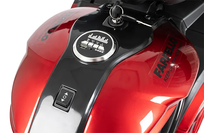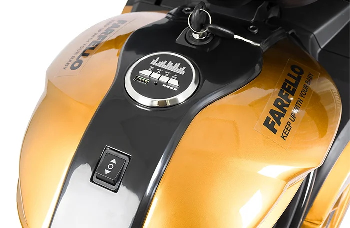• Управление как у настоящего мотоцикла: включение с ключа, движение от ручки газа, остановка — с помощью ножной педали.
