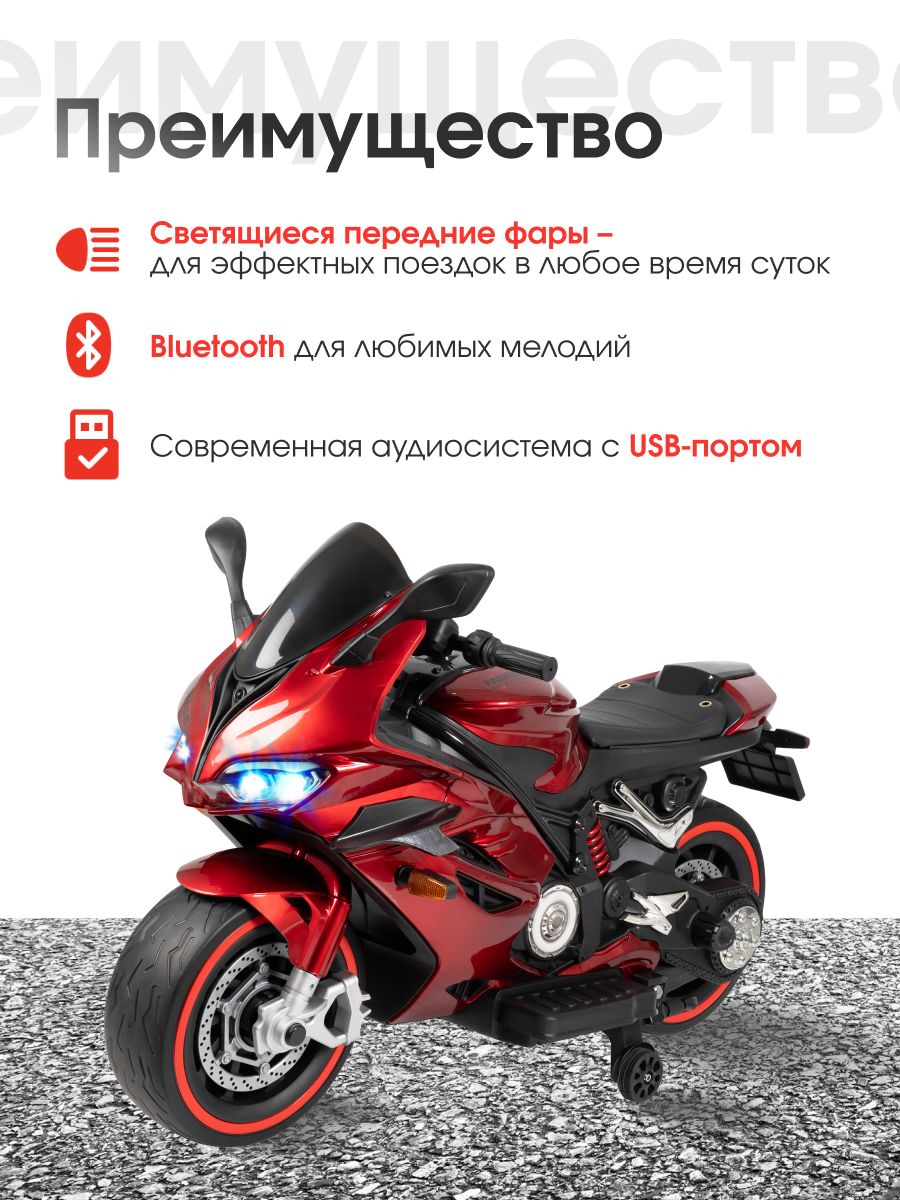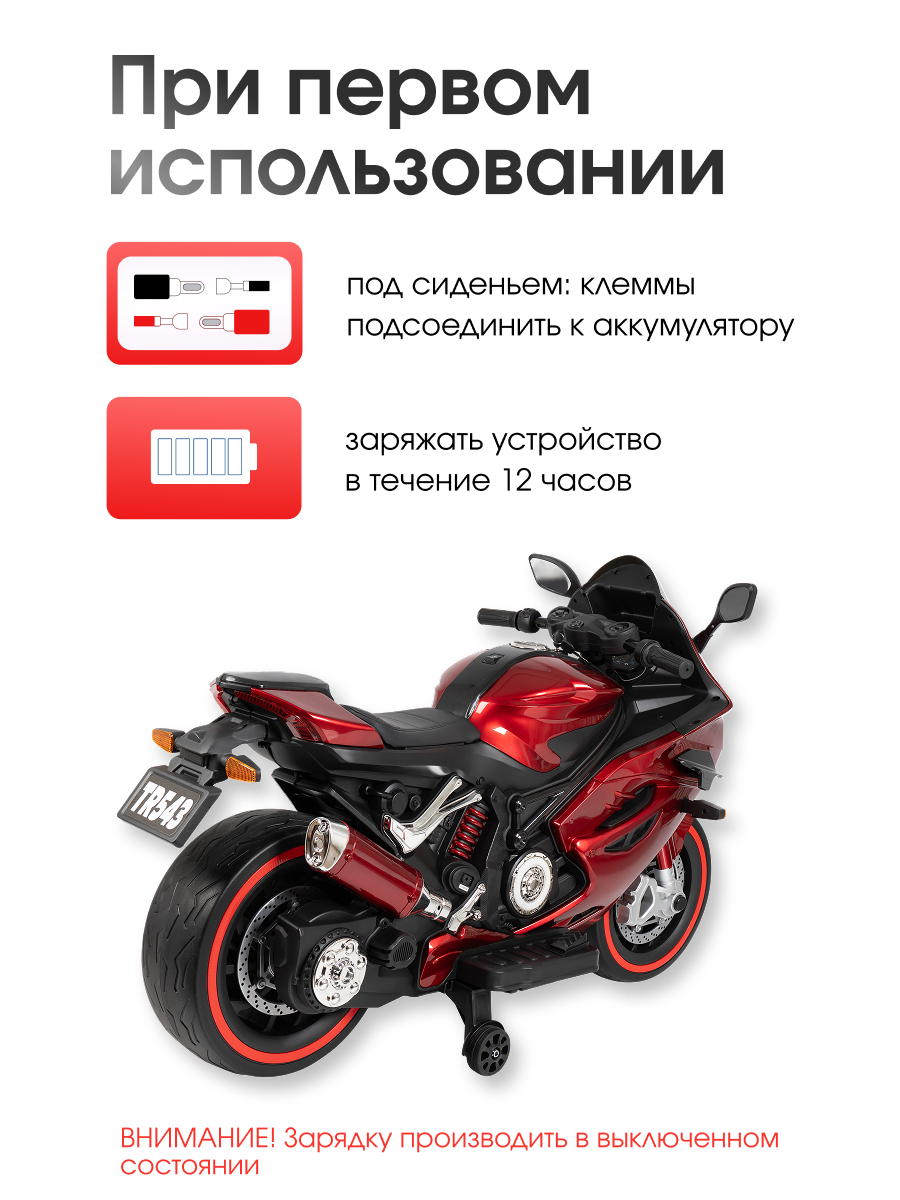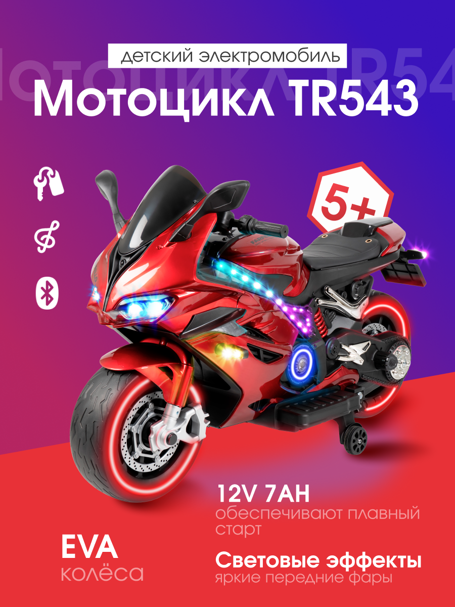 Стильный и мощный детский электромотоцикл TR543 — идеальный выбор для юных гонщиков, которые мечтают об активных прогулках и захватывающих поездках. Эта модель сочетает в себе реалистичный дизайн, надежные характеристики и продуманный комфорт.