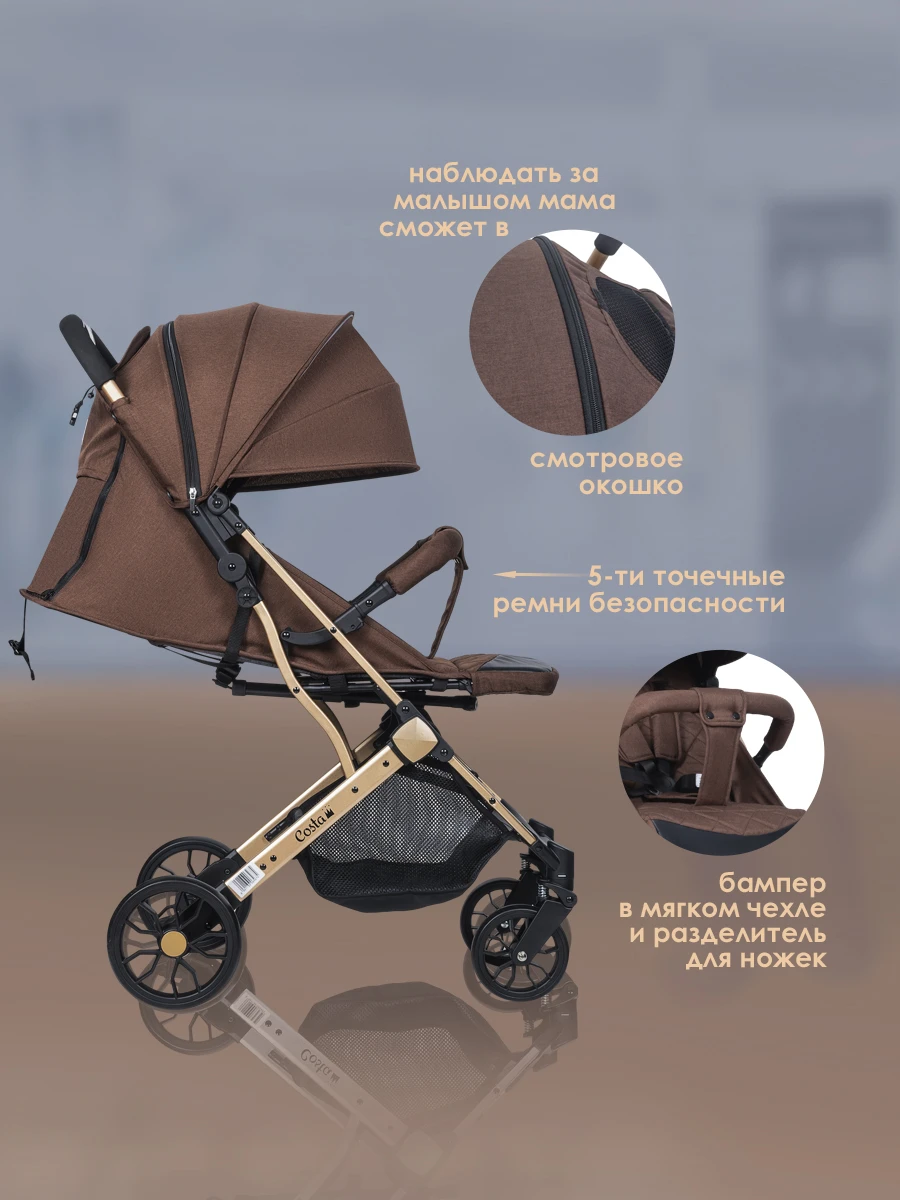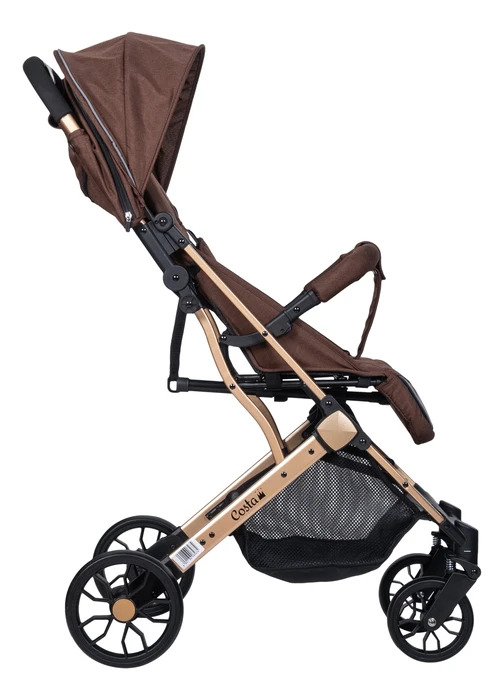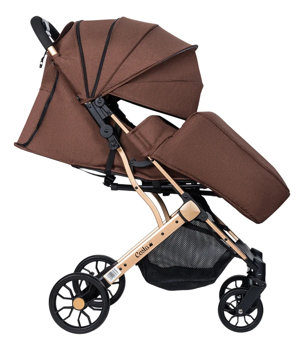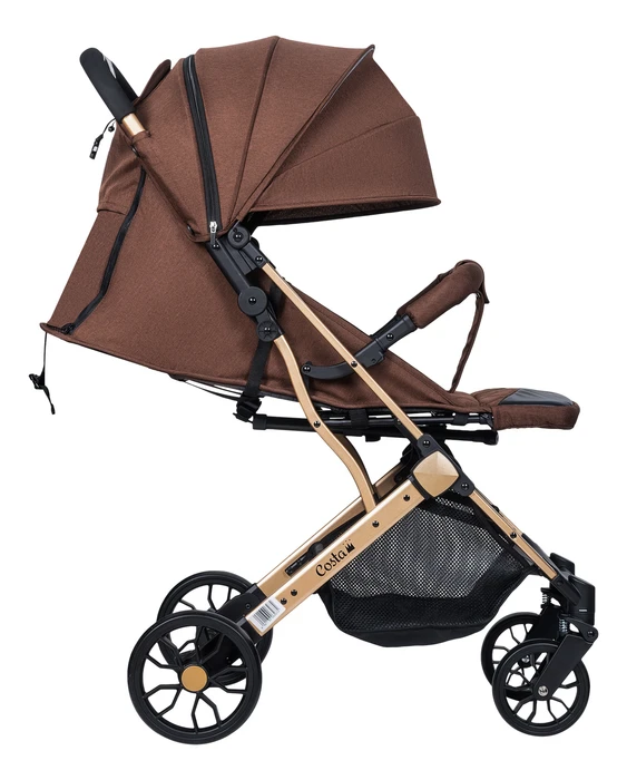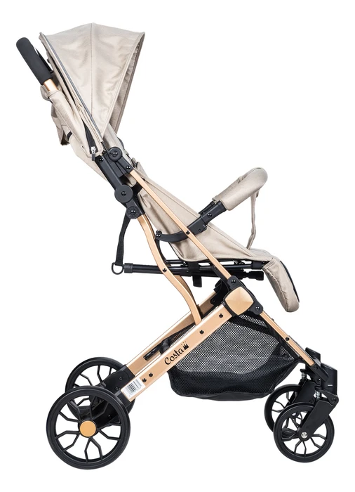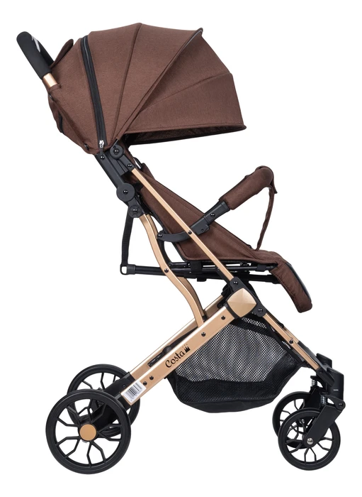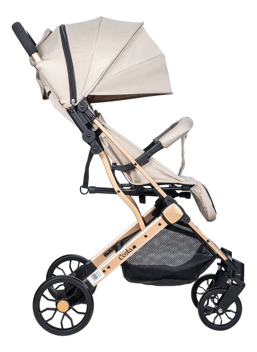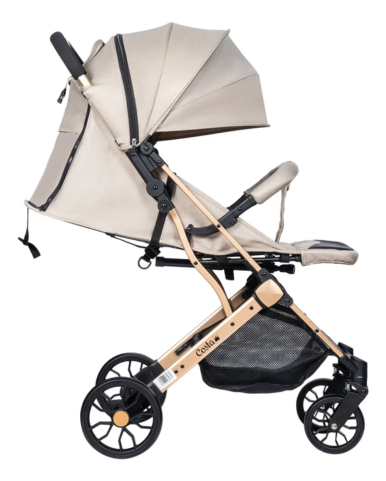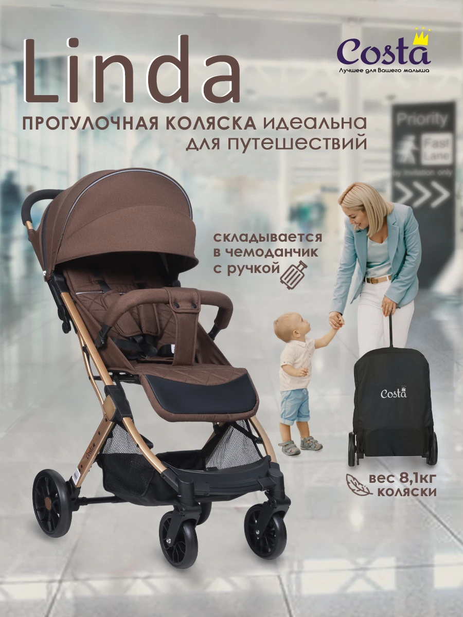 Прогулочная коляска Costa Linda - легкая и маневренная, создана для беззаботных прогулок и путешествий. Она легко и быстро складывается одной рукой, а ее габариты в сложенном состоянии позволяют брать коляску с собой в транспорт. Также сложенную коляску удобно катить за собой в виде компактного чемоданчика за высокую телескопическую ручку. В жаркую погоду гулять с Costa Linda одно удовольствие, ведь она оснащена глубоким капюшоном с дополнительной секцией на молнии и большим козырьком с москитной сеткой, защищающим малыша от солнца, а также большим отделом для проветривания. В прохладную погоду от ветра и дождя кроху защитит утепленный полог для ножек, который идет в комплекте. Для комфортного сна конструкция предусматривает раскладывающуюся до 175° спинку и регулируемую по высоте подножку, удлиняющую спальное место ребенка. Наблюдать за малышом мама сможет в смотровое окошко. Безопасность обеспечивают бампер в мягком чехле, тканевый разделитель для ножек и регулируемые по высоте и ширине пятиточечные ремни безопасности с накладками на плечи и центральным замком, открывающим все пряжки замка одновременно. Колеса EVA и пружинные амортизаторы обеспечивают плавность и мягкость в движении, маневренность в узких пространствах достигается за счет возможности вращения передних колес на 360°. Важно отметить, что все колеса коляски съемные, их без труда можно будет помыть после прогулки. Несомненное преимущество данной модели – вместительная багажная корзина, позволяющая оставить руки свободными после похода в магазин. А для нужных на прогулке мелочей имеется большой карман.