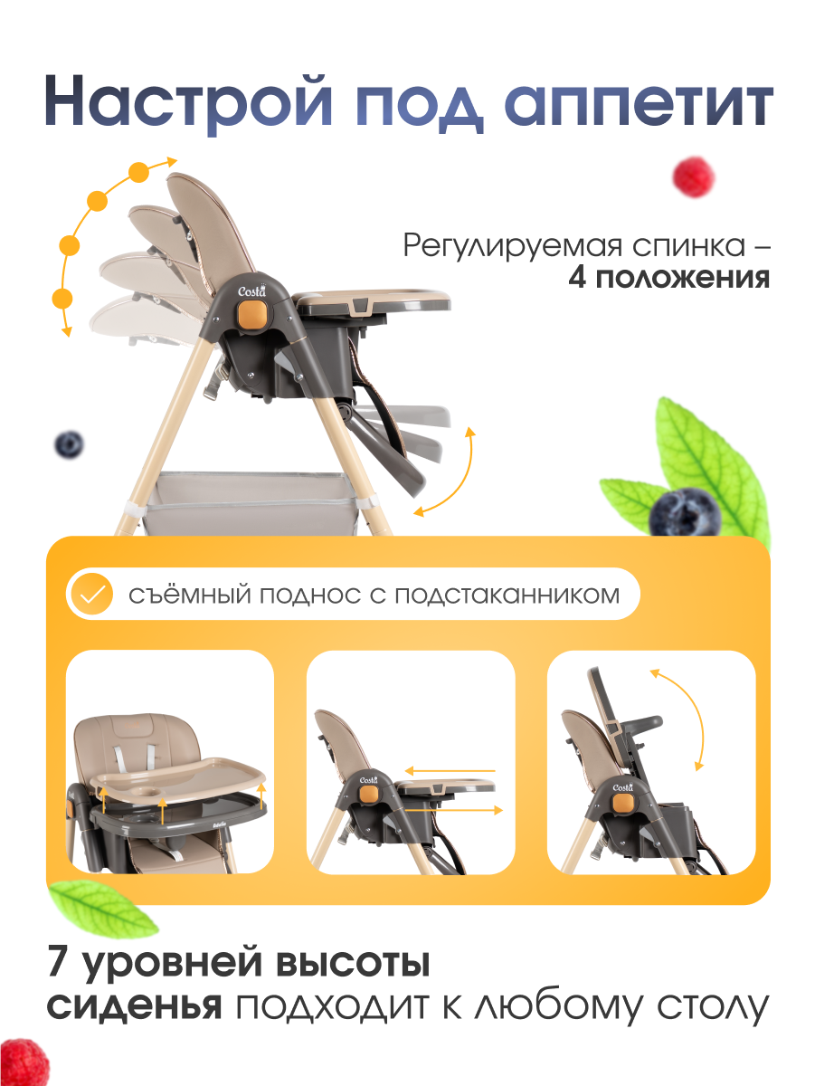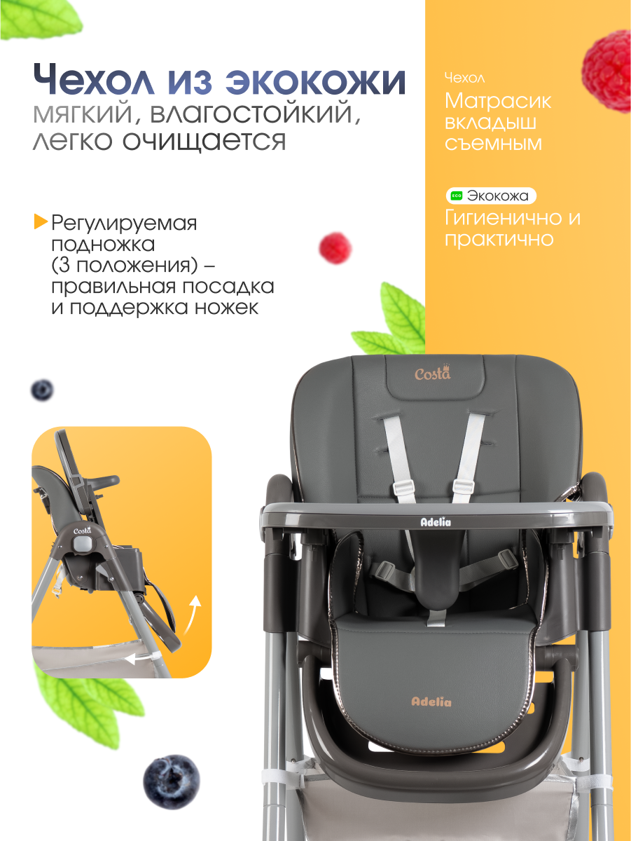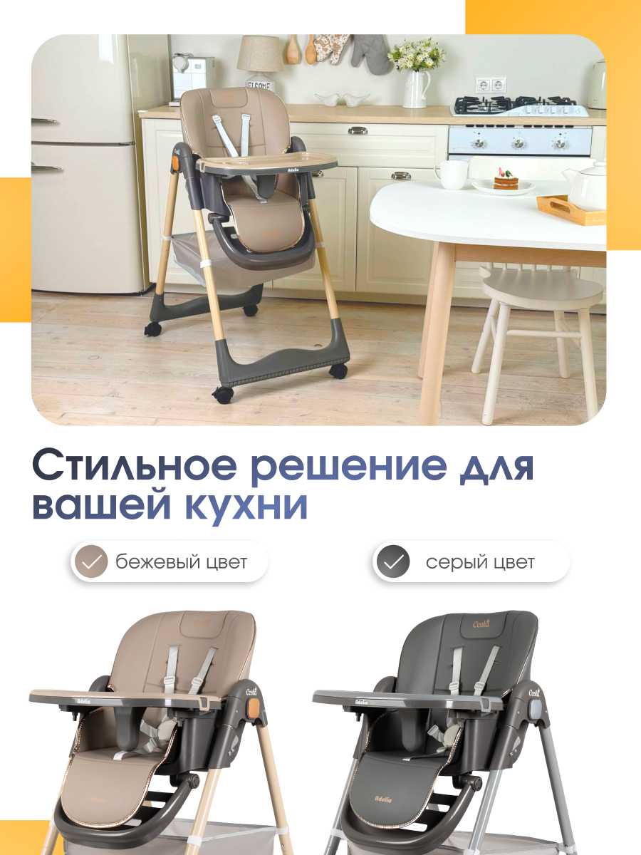 Детский стульчик для кормления Adelia - удобный, функциональный и компактный, создан для комфортного кормления малышей с 6 месяцев до 3 лет. Он сочетает продуманный дизайн, безопасность и легкость в уходе — всё, что важно для современных родителей.