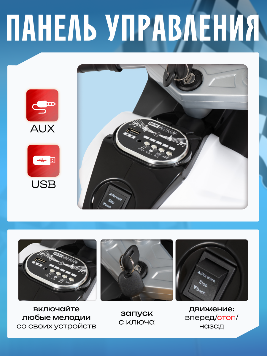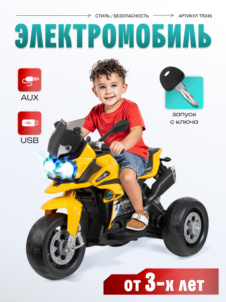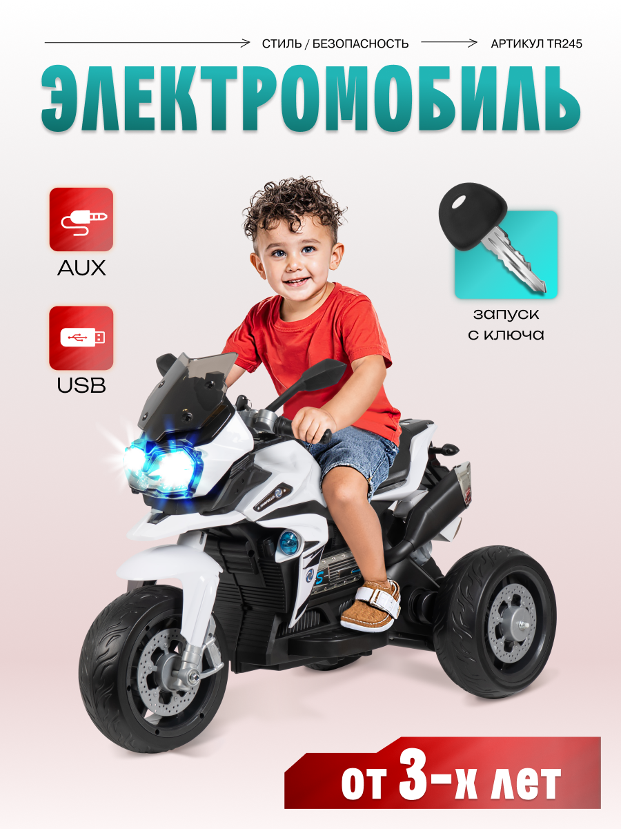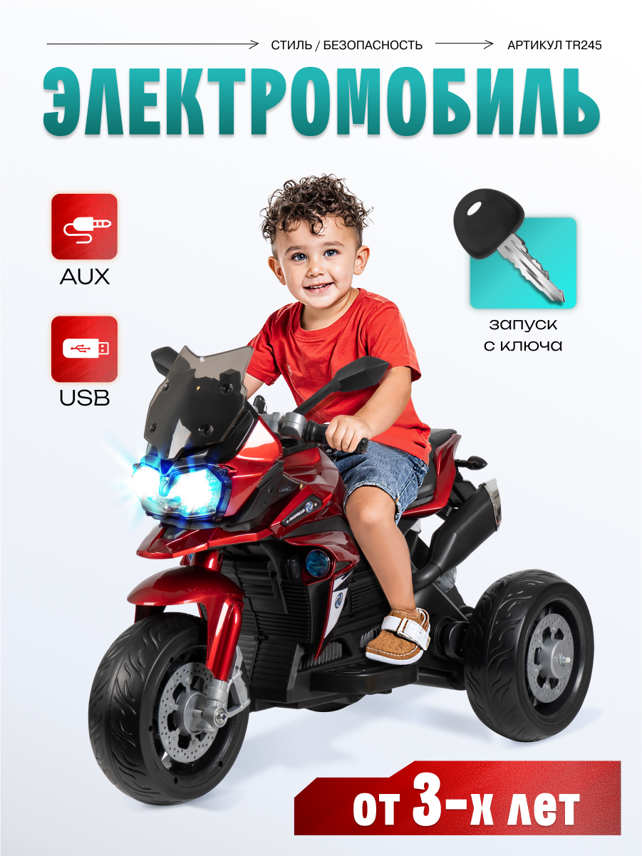 Компактный электромобиль для первых приключений вашего малыша! Стильный трицикл TR245 создан специально для самых маленьких водителей. Благодаря компактным размерам и продуманной конструкции, он станет идеальным выбором для веселых прогулок как дома, так и на улице.