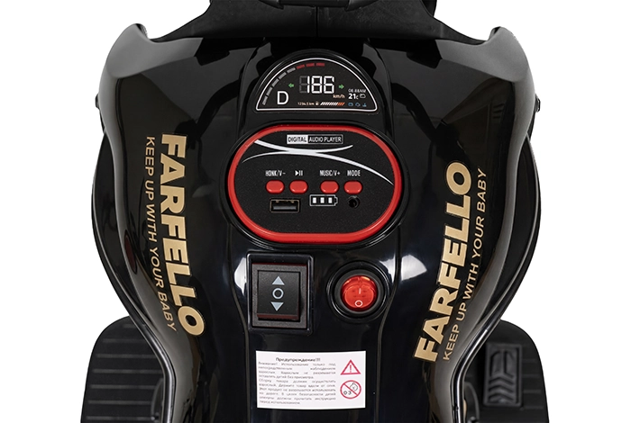 Простота управления. Электромобиль включается одной кнопкой — ребёнок легко справится самостоятельно.